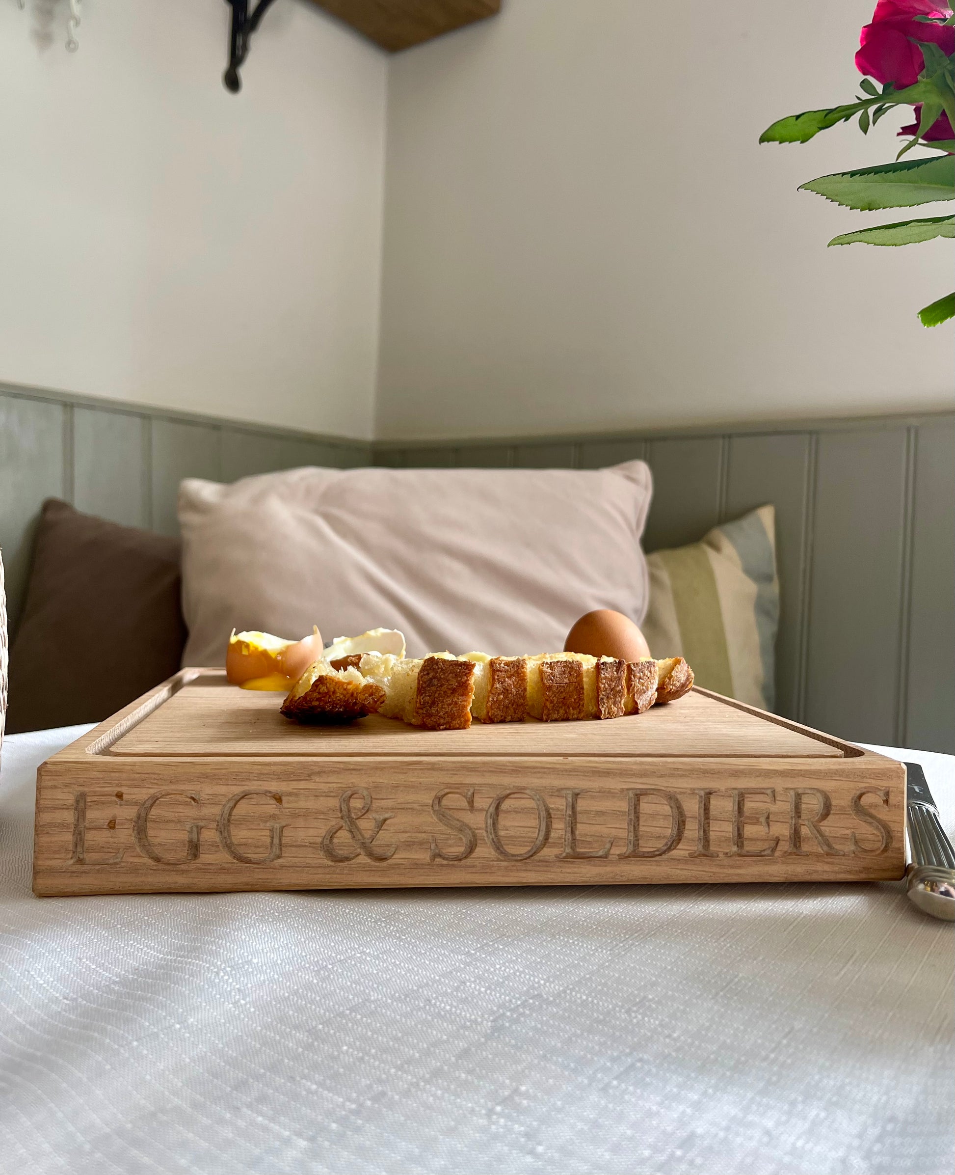 Start your mornings in style with our Handmade Personalised Oak Egg and Soldier Board — a charming and functional addition to any breakfast table. Crafted from premium solid oak, this rustic board is ideal for those who love a traditional British breakfast with a personalised touch.