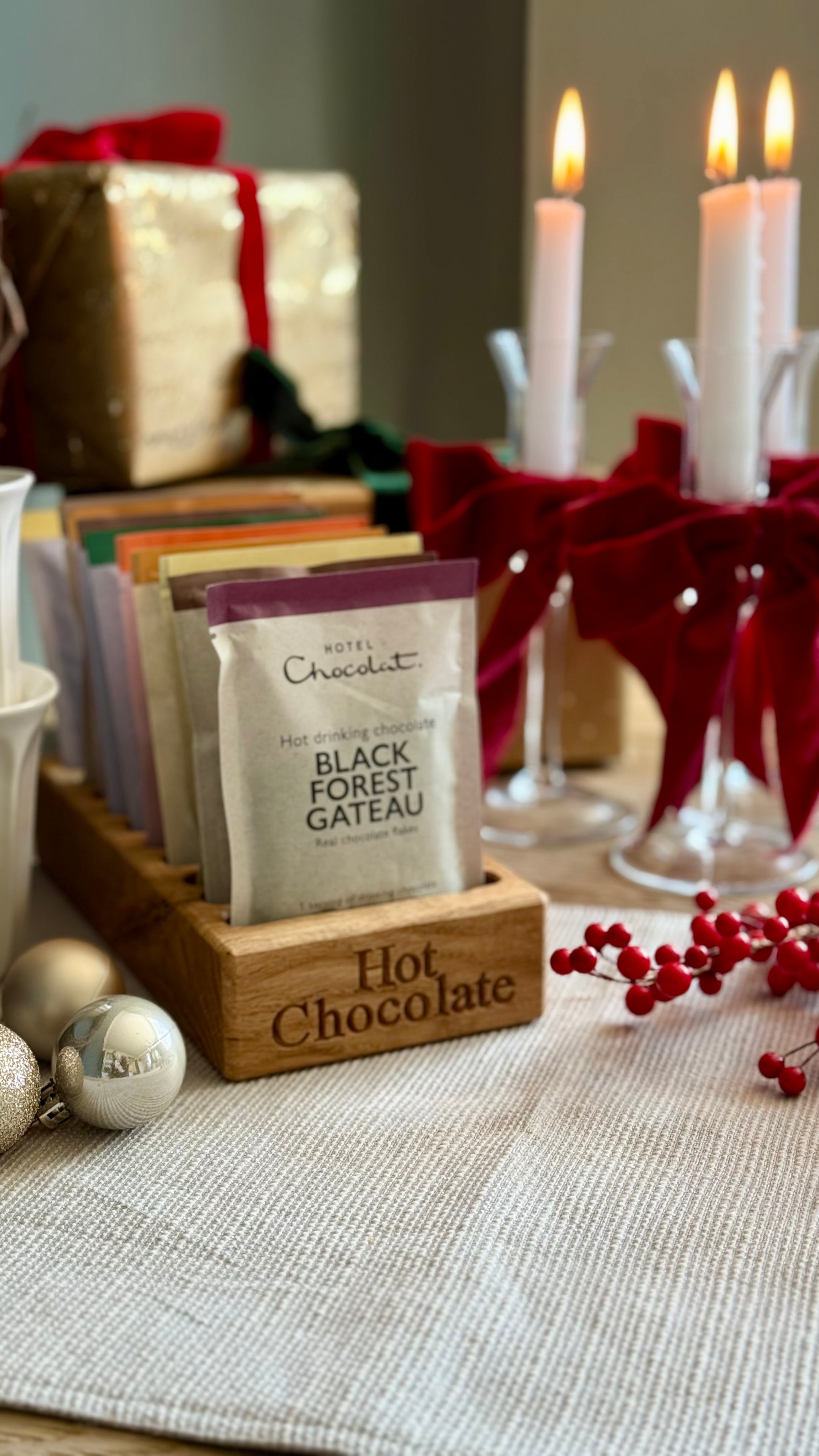 Upgrade your hot chocolate setup with our Handmade Oak Velvetiser Sachet Holder — designed to keep your Hotel Chocolat Velvetiser sachets perfectly organised. Made from solid European oak, it brings natural warmth, order and a touch of luxury to your kitchen. Personalise it to suit your style or make it a standout gift for any hot chocolate lover.